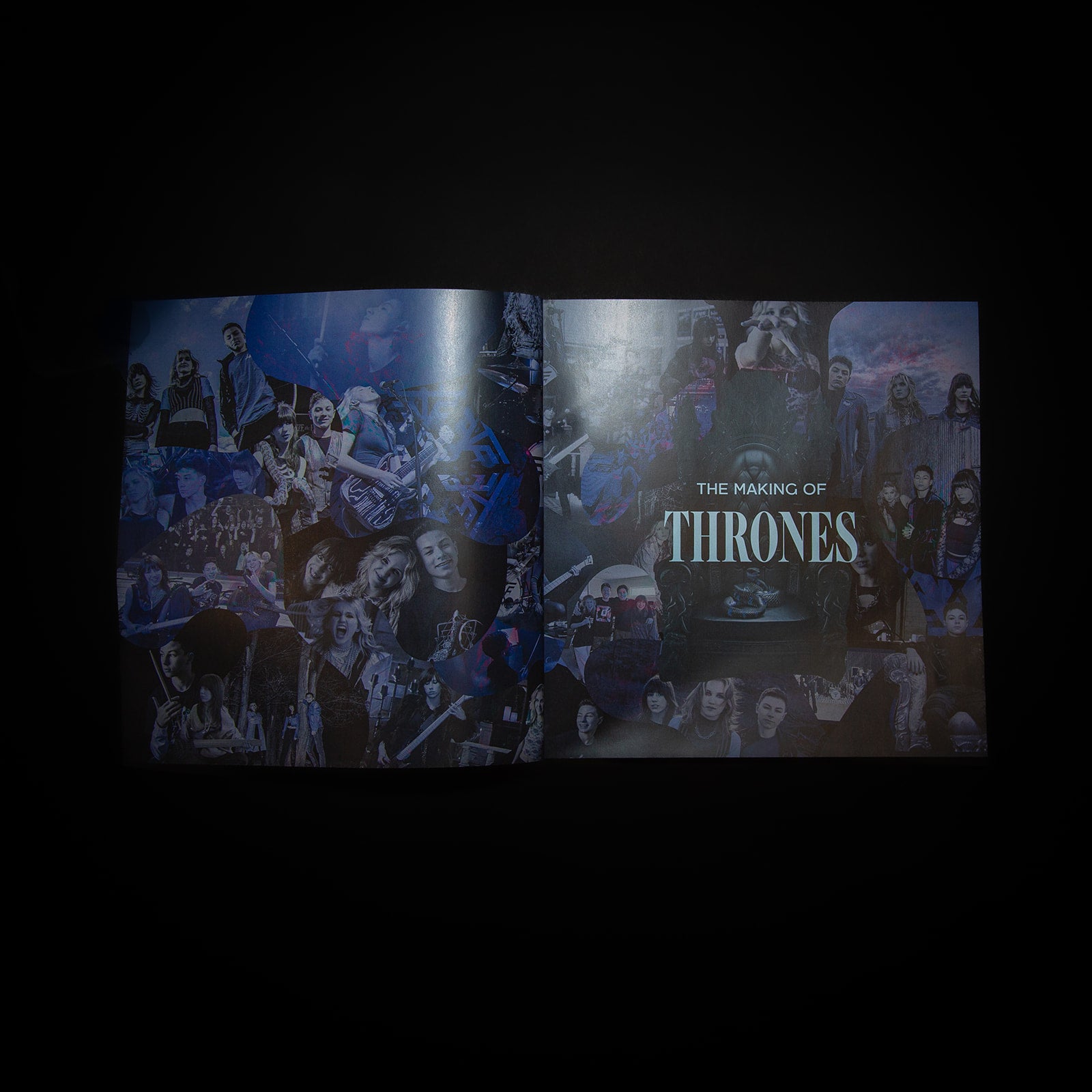This collectors edition of the Thrones EP includes an exclusive marble vinyl disk, autographed jacket, and 66 page lookbook chronicling the beginnings of Freeze the Fall. Side A is the original studio recording of Thrones; side B, "The Masquerade", contains live recordings of each song recorded at Oodellaly Studios.